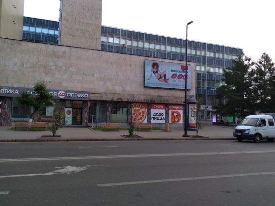 - первая линия, самый центр города, рядом остановки общественного транспорта, большой пешеходный и автомобильный трафик, рядом огромное количество офисных и административных зданий, культурных и досуговых организаций, школ, садиков, сквер